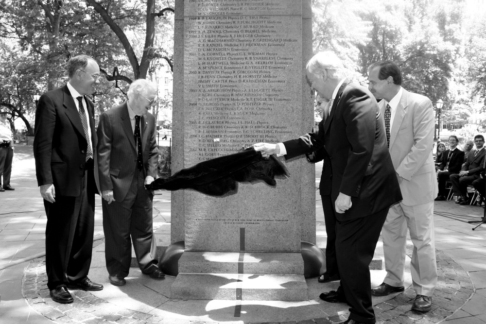 It’s become a fine tradition to gather at the Nobel Monument in New York's Theodore Roosevelt Park and uncover the latest inscriptions of American Nobel Laureates.