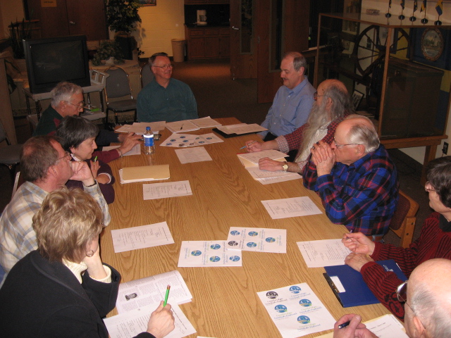 Committee members for the Cambridge Swedish Festival have been meeting regularly over the past year to design a humanities and folk-based program for the next festival, June 11-15, 2008. From left to right: Karen and Wilson Barfneckt, Marilyn McGriff, Jack Puterbaugh, Arne Everson, John Schlagel, Jim Johnson, Tom Coleman, Karen Lood and Willis Dahlman. Photo by V. S. Arrowsmith -