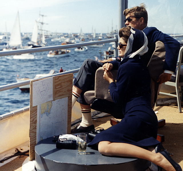 President John F. Kennedy and wife Jackie watching Americas Cup 1962. -