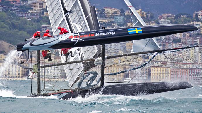 The AC45 Artemis catamaran racing in Naples earlier this year. -